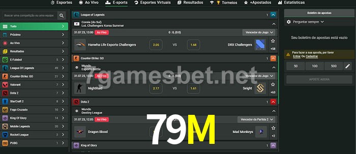 A aposta 79M oferece aos jogadores a experiência mais conveniente de apostas em eSports!